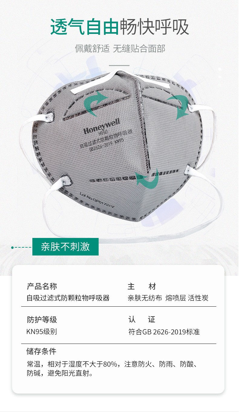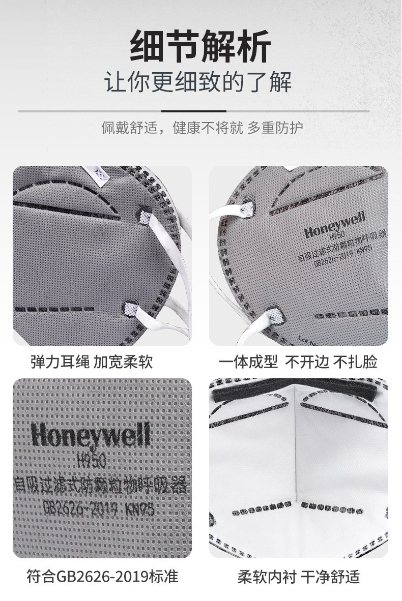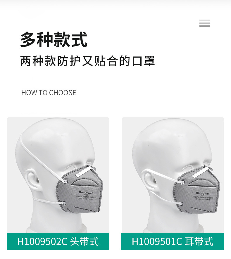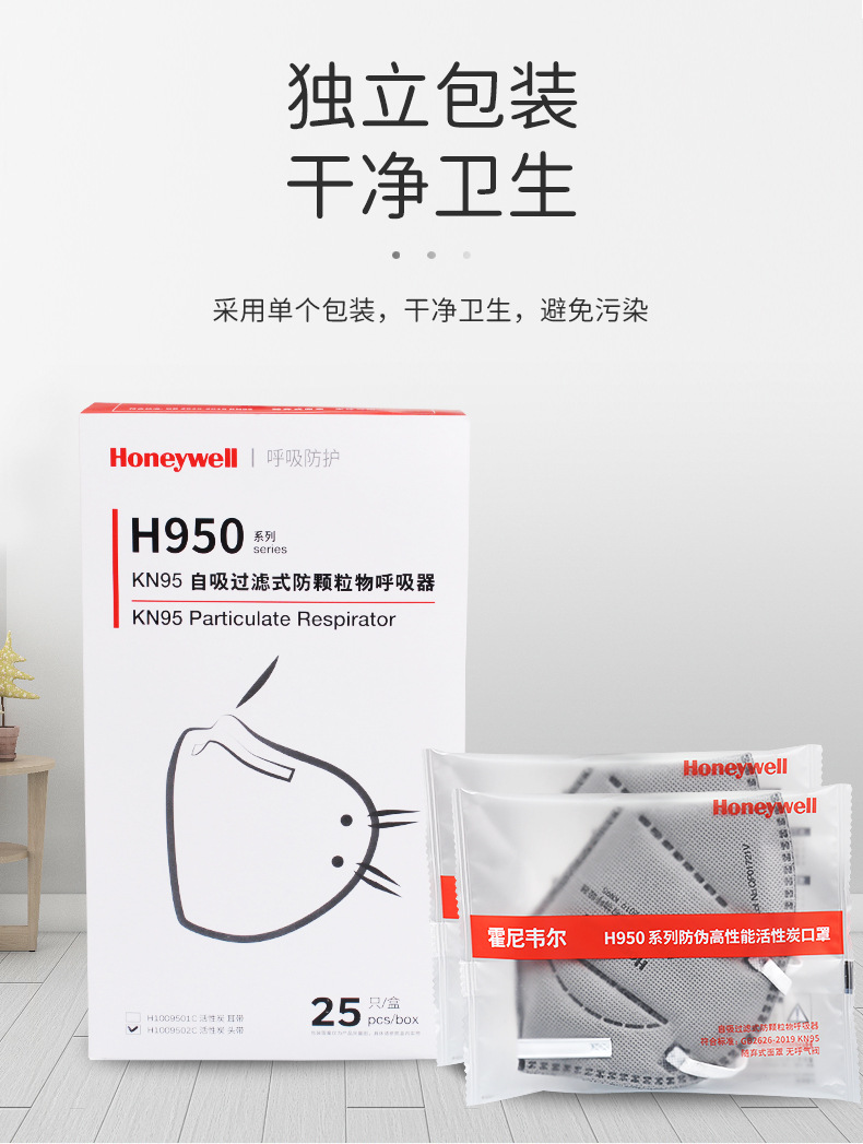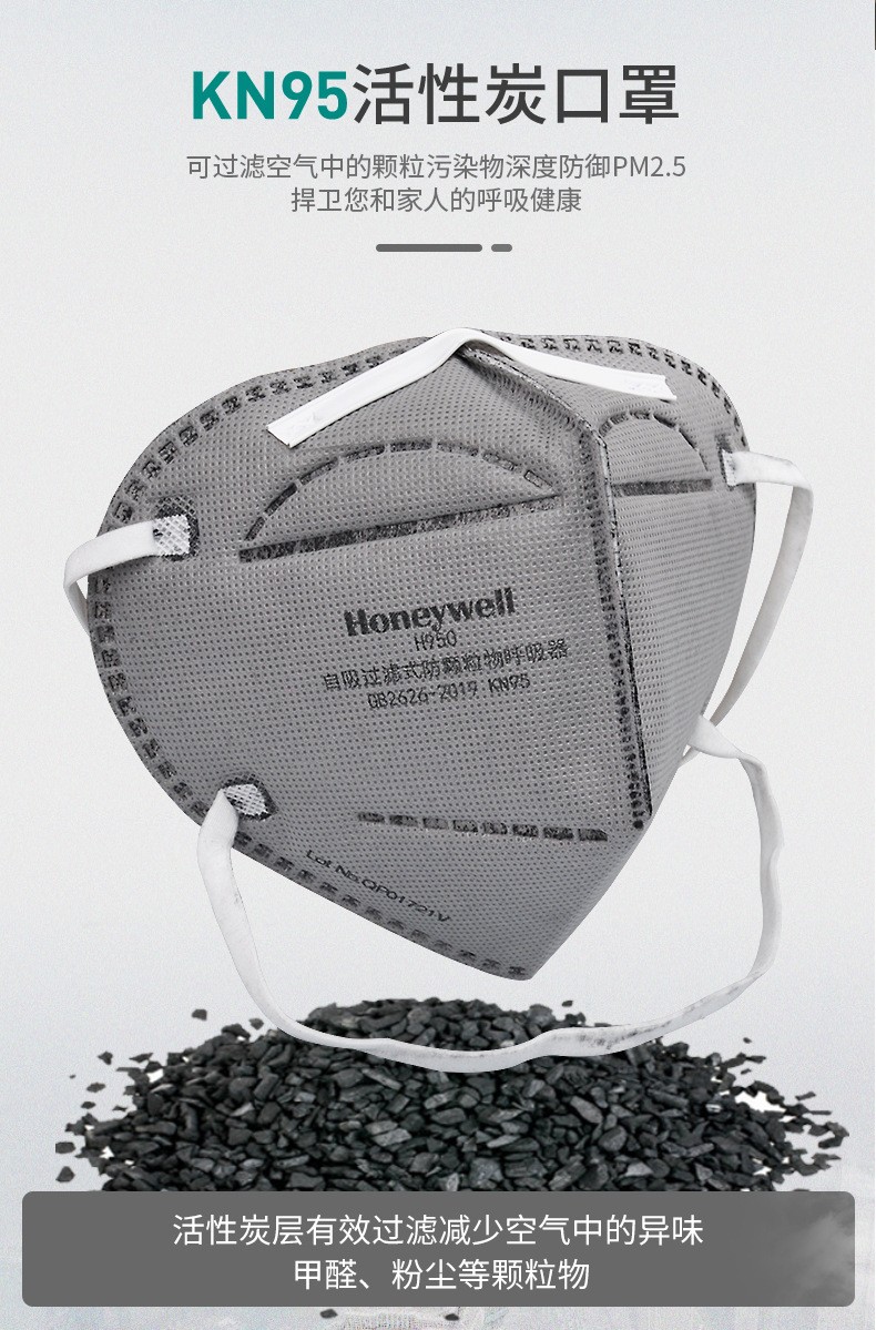 霍尼韦尔 H1009501C H950 KN95折叠式口罩耳戴式活性炭单片装;