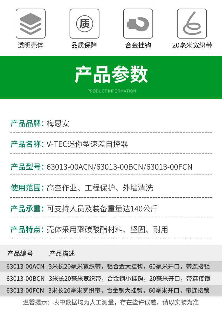 • 商品名称:梅思安63013-00BCN 迷你型速差自控器 LATCHWAYS 织带 3米长织带