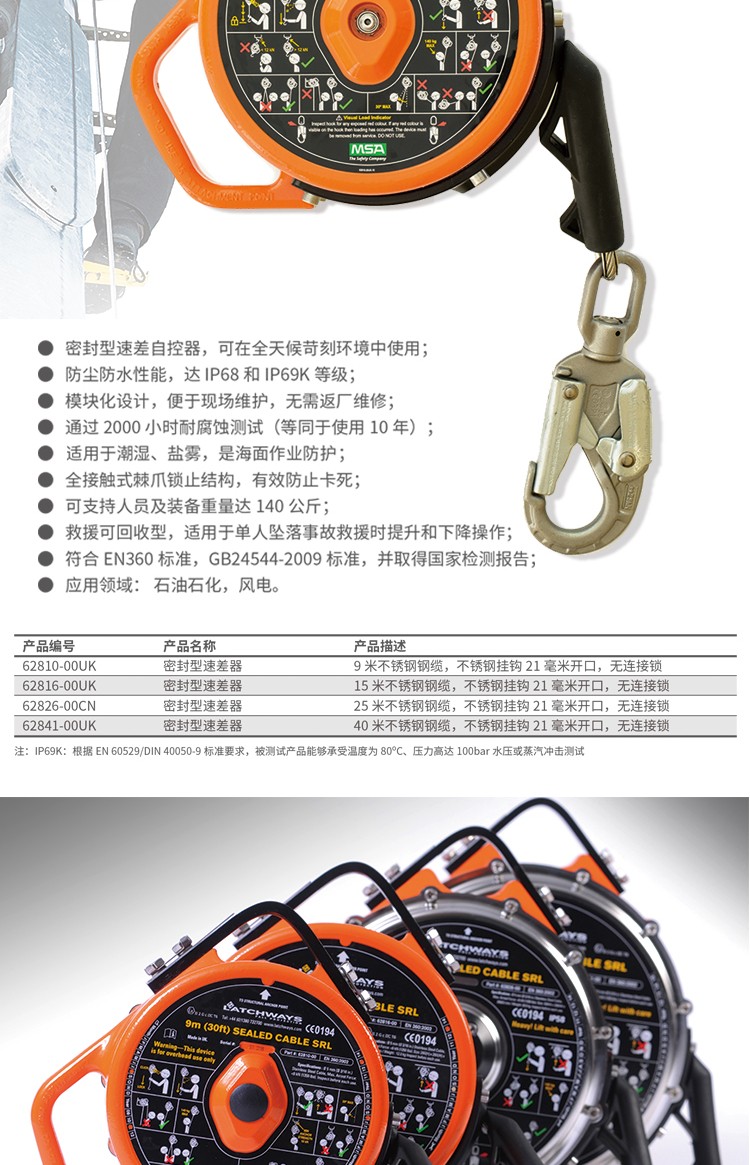 • 商品名称:梅思安62826-00CN 密封式速差自控器 25米长不锈钢钢缆(中文标签)(项目型)