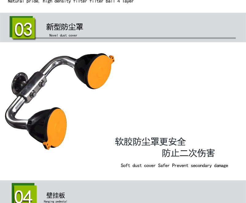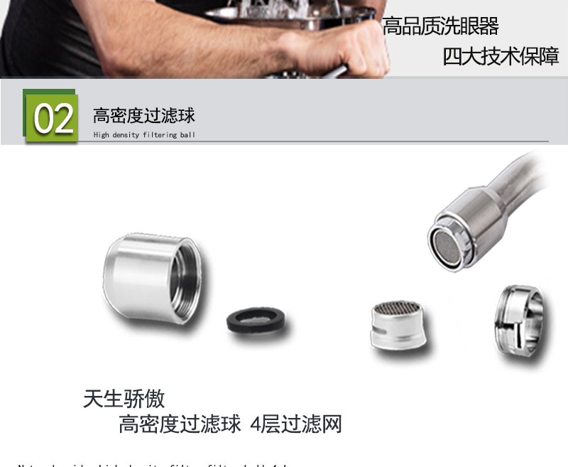 洗眼过滤网:高密度PP+304双层过滤网,可过滤水中的杂质,喷出的水呈气雾状,合抱,温和;