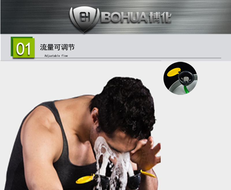 功能:用于石油、化工、饮料、医药等行业,当发生化学液体、有毒有害物质、以及火灾喷溅到工作人员身体、脸部、眼睛时迅速冲洗降低危害程度;