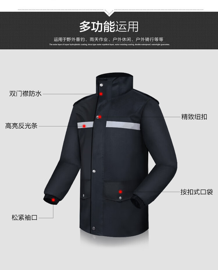 谋福 BZ01雨衣劳动防护分体雨衣套装执勤巡逻雨衣徒步防水施工雨衣制服。