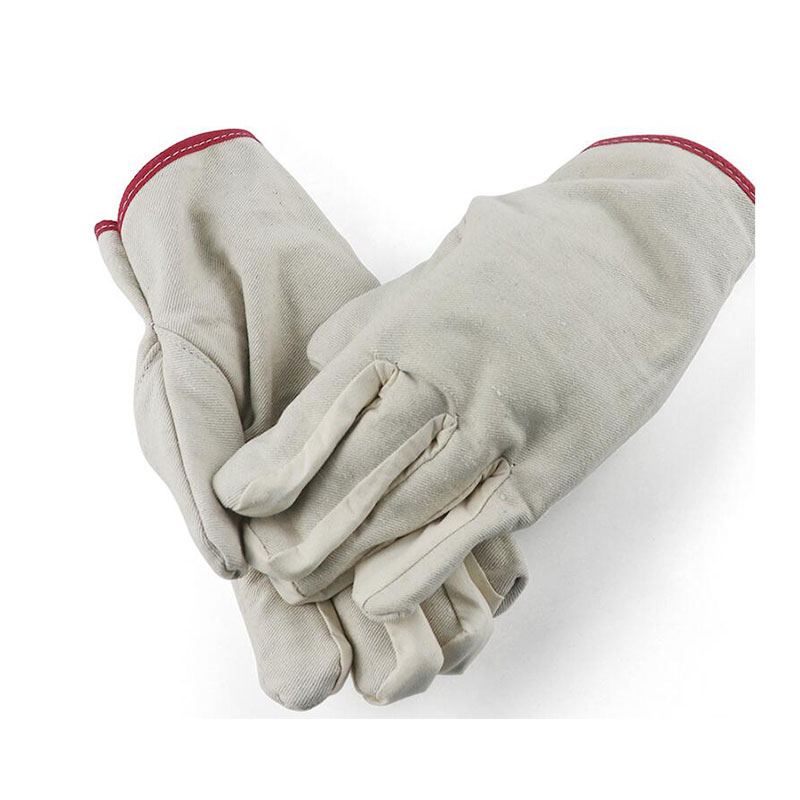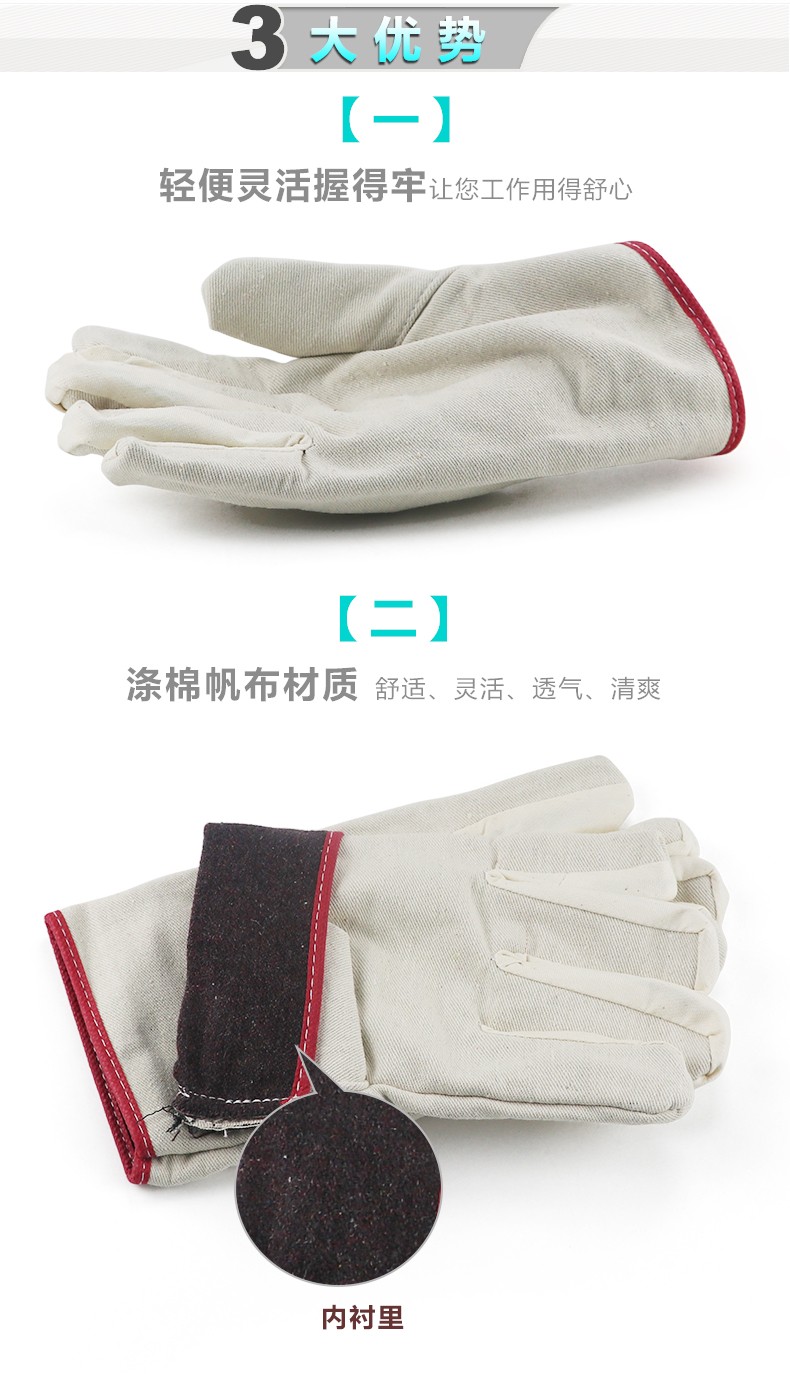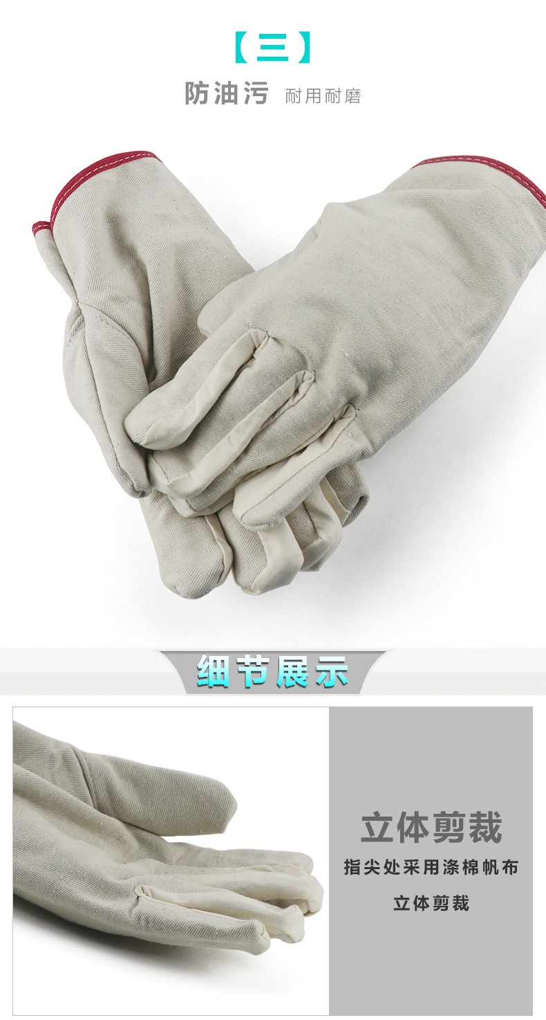 鼎耐24道黄甲线白帆布手套(紫边)。
