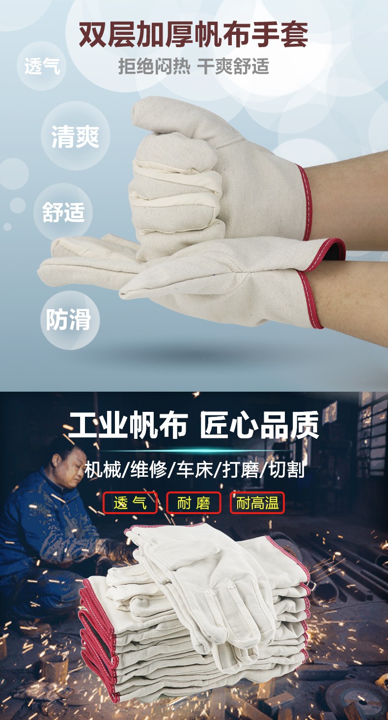 国产普通 2111黄布二层全掌手套(BC)-均码
