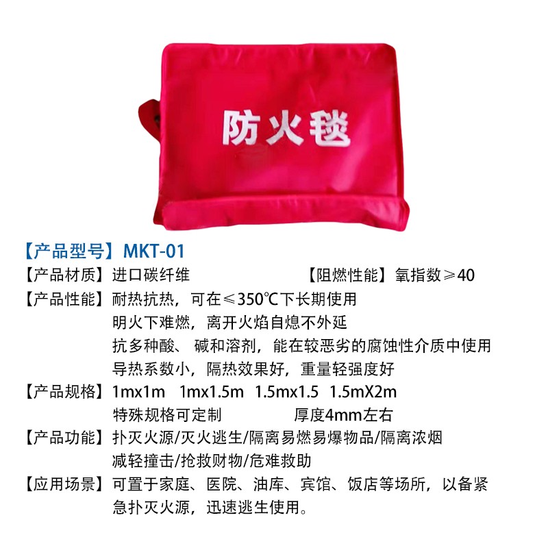 碳纤维防火逃生毯是由进口防火纤维,经特殊精细加工而成的防火逃生产品;