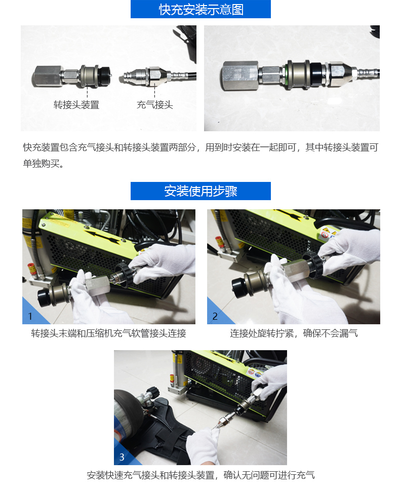 11.快速接头:小巧、可单手操作、有锁紧防脱功能。