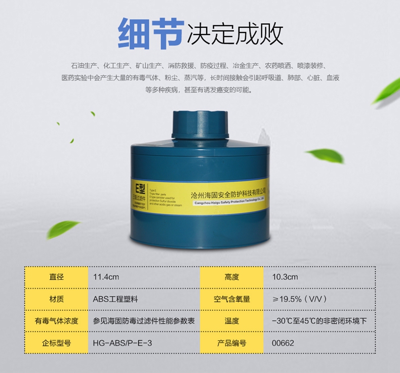 ● 选用推荐:适用于实验室,化工厂,垃圾处理,农药、人造纤维、染料等含有酸性气体的环境,如生活垃圾,塑料燃烧可选用本滤毒罐进行防护。