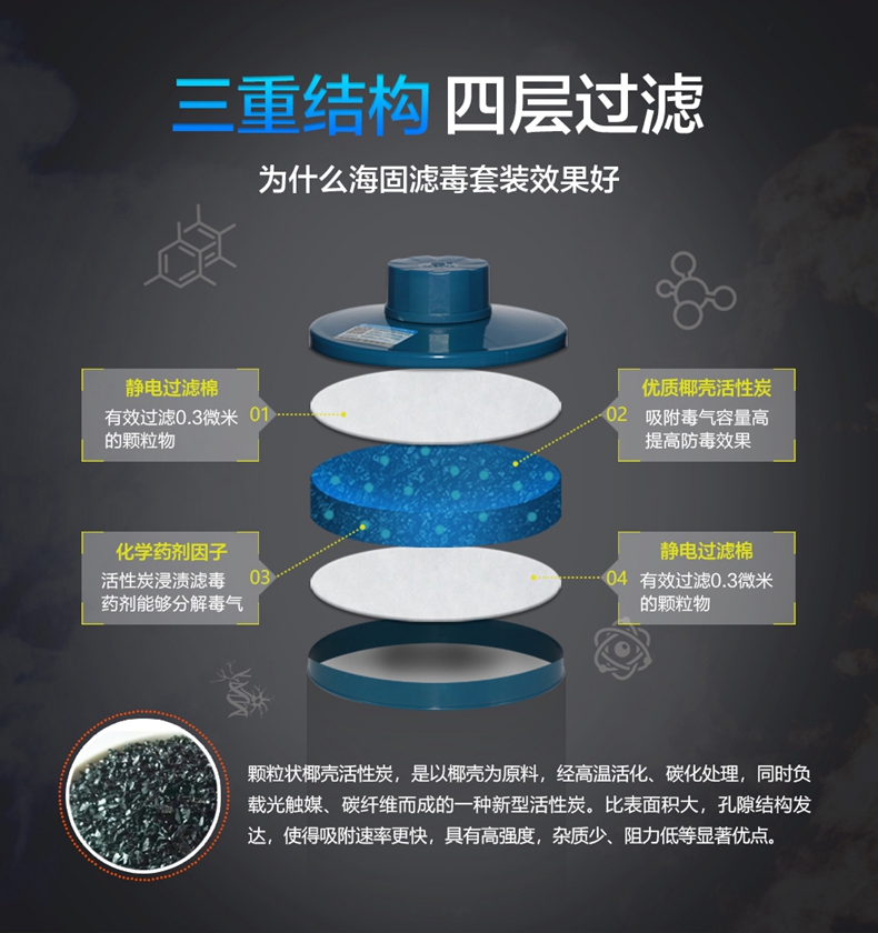 ● 防护对象:二氧化硫、氯气、硫化氢、氮的氧化物、光气、磷和含氯有机农药等;