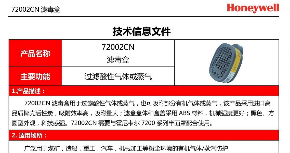 霍尼韦尔72002CN酸性气体滤毒盒。