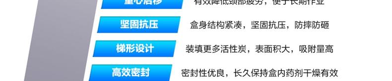 梯形盒设计,装填更多活性炭药剂,表面积更大,吸附容量更高;