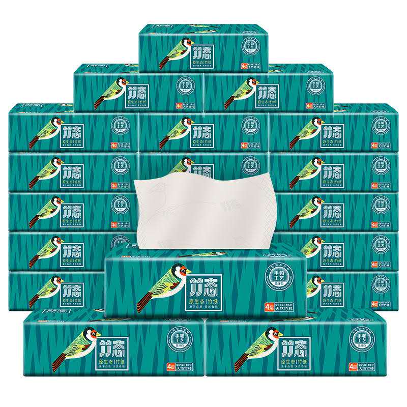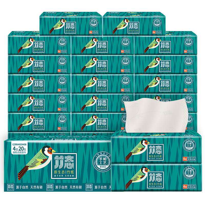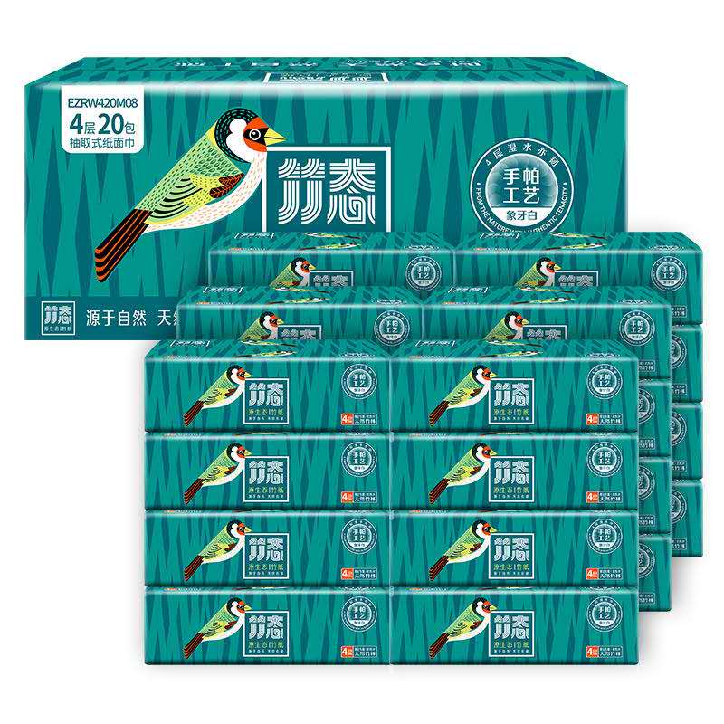 竹态 EZRW420M08 象牙白压纹软抽4层80抽20包M码EC(量贩装)。
