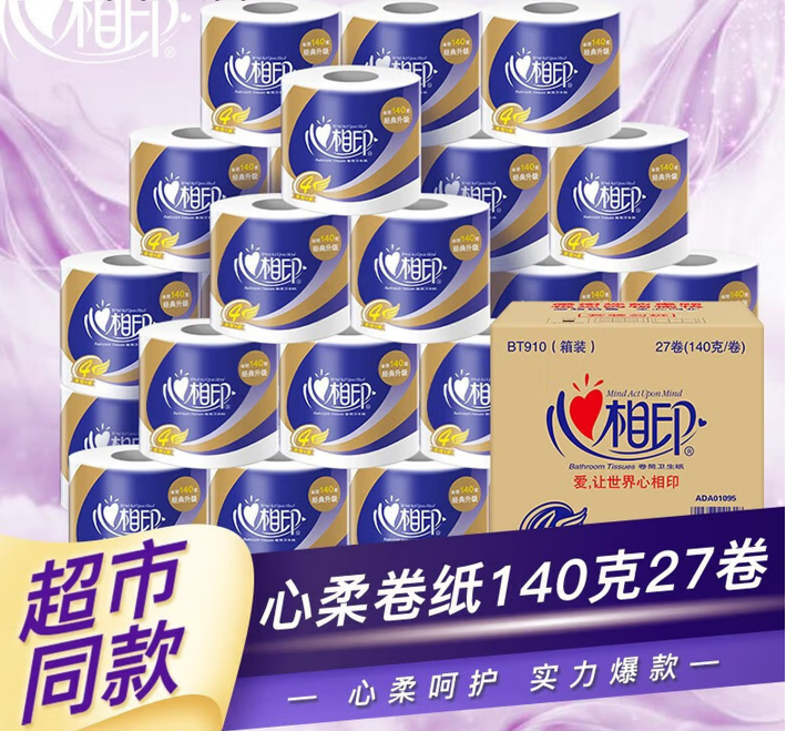 • 商品名称:心相印 BT910DSZ 卷纸卷筒心柔系列卫生纸140g*27卷