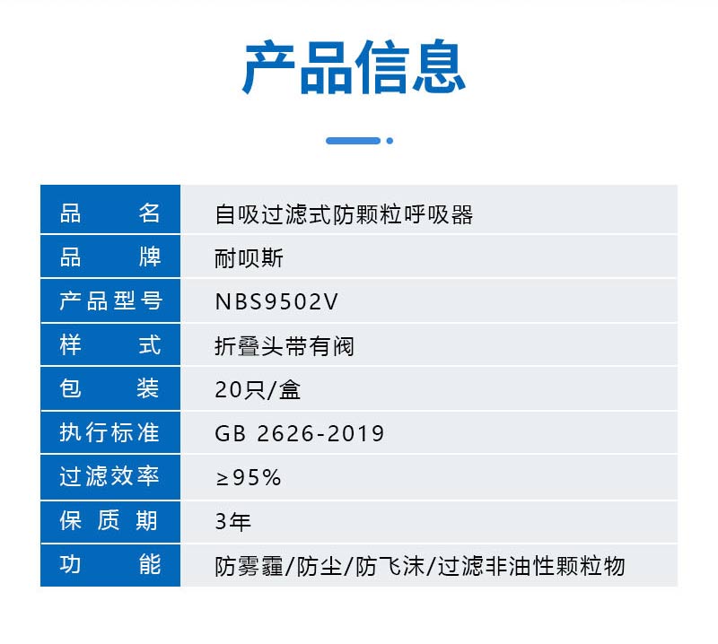 NABES/耐呗斯NBS9502V KN95头带式 有呼吸阀口罩 外鼻梁;