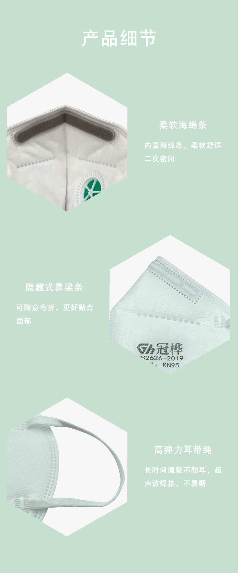 产品优势:添加上下海绵条,佩戴舒适,佩戴更加密合,减少因泄漏而让污染物进入口罩内;