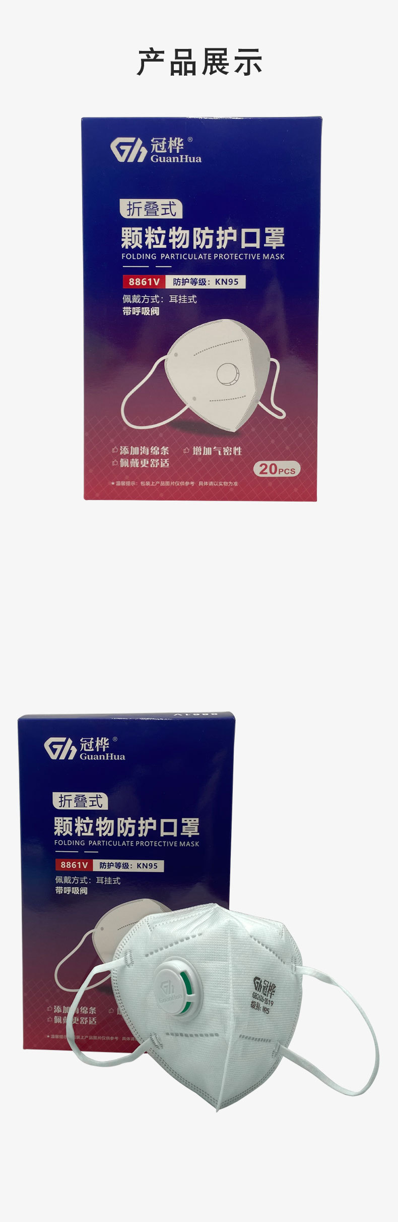 产品名称:折叠式颗粒物带呼吸阀防护口罩(非医用/四层);