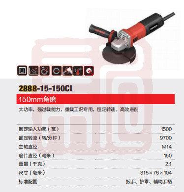 • 商品名称:大有 2888-15-150CI 150mm角磨 1500W侧开关