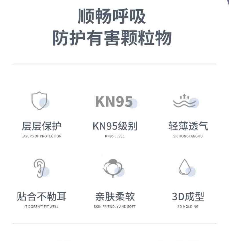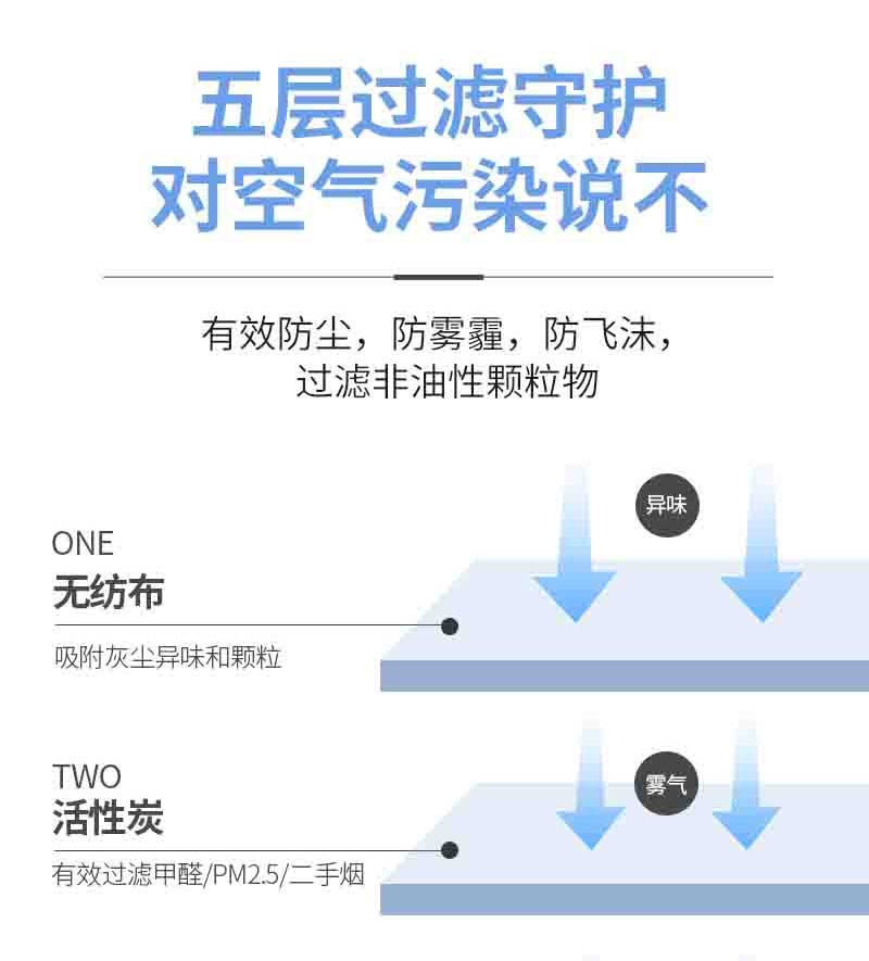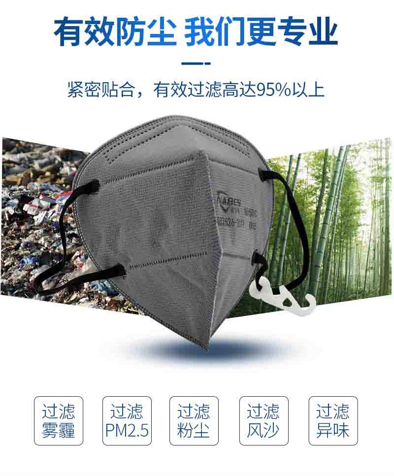 产品特点:透气防雾霾防尘非一次性活性炭KN95;