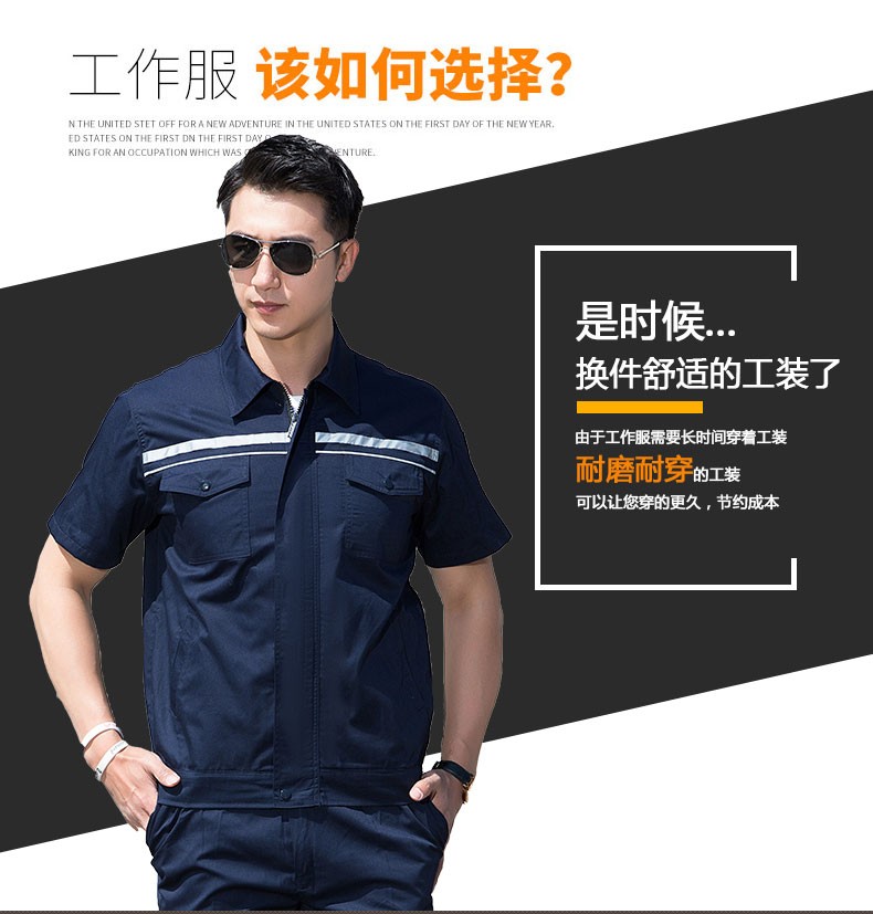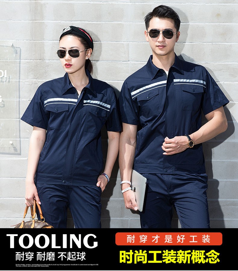 卡迪雄狮 LW6022半袖反光条工作服深蓝色。