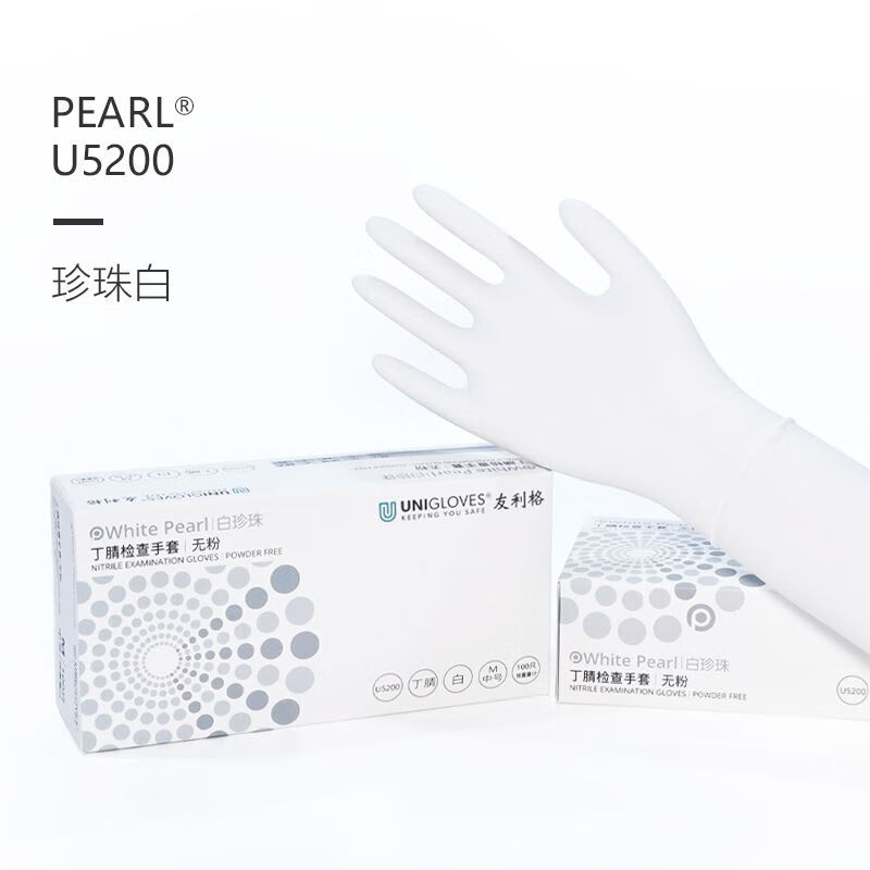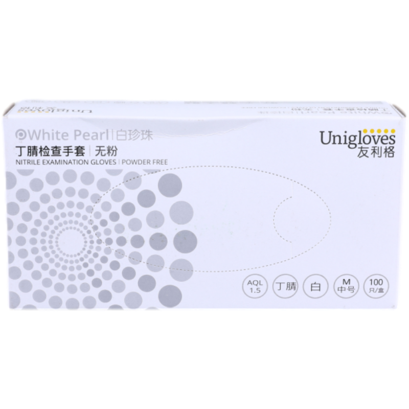 友利格 白珍珠无粉丁腈检查手套;