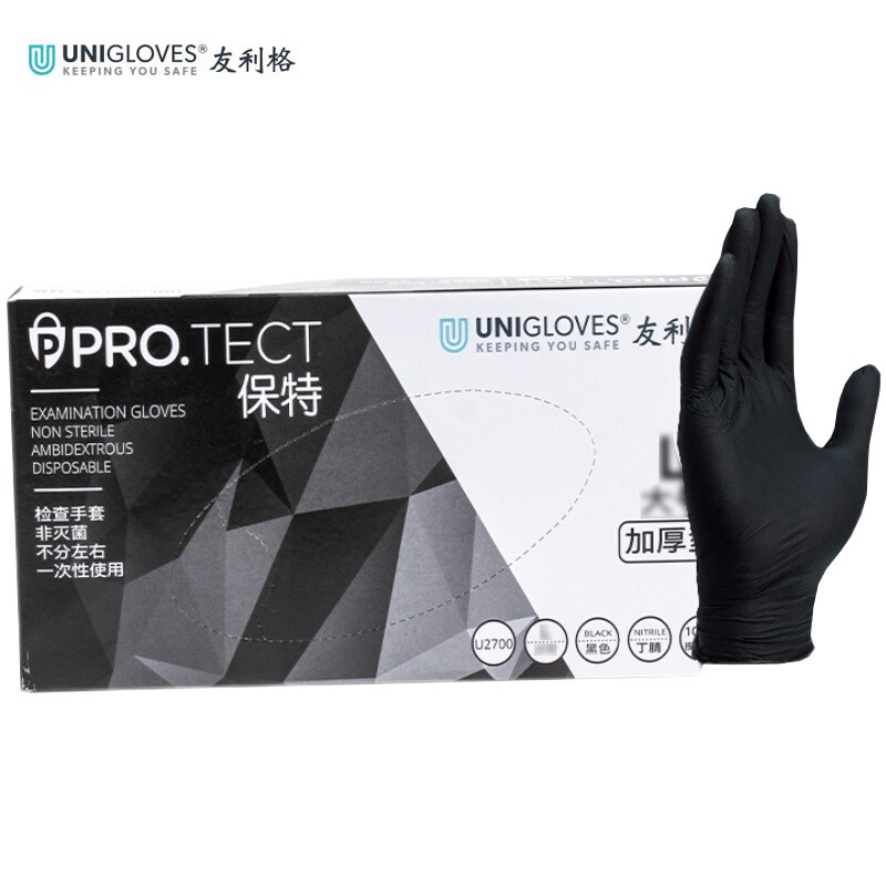 友利格 保特黑 一次性丁腈检查手套 加厚4.8克;
