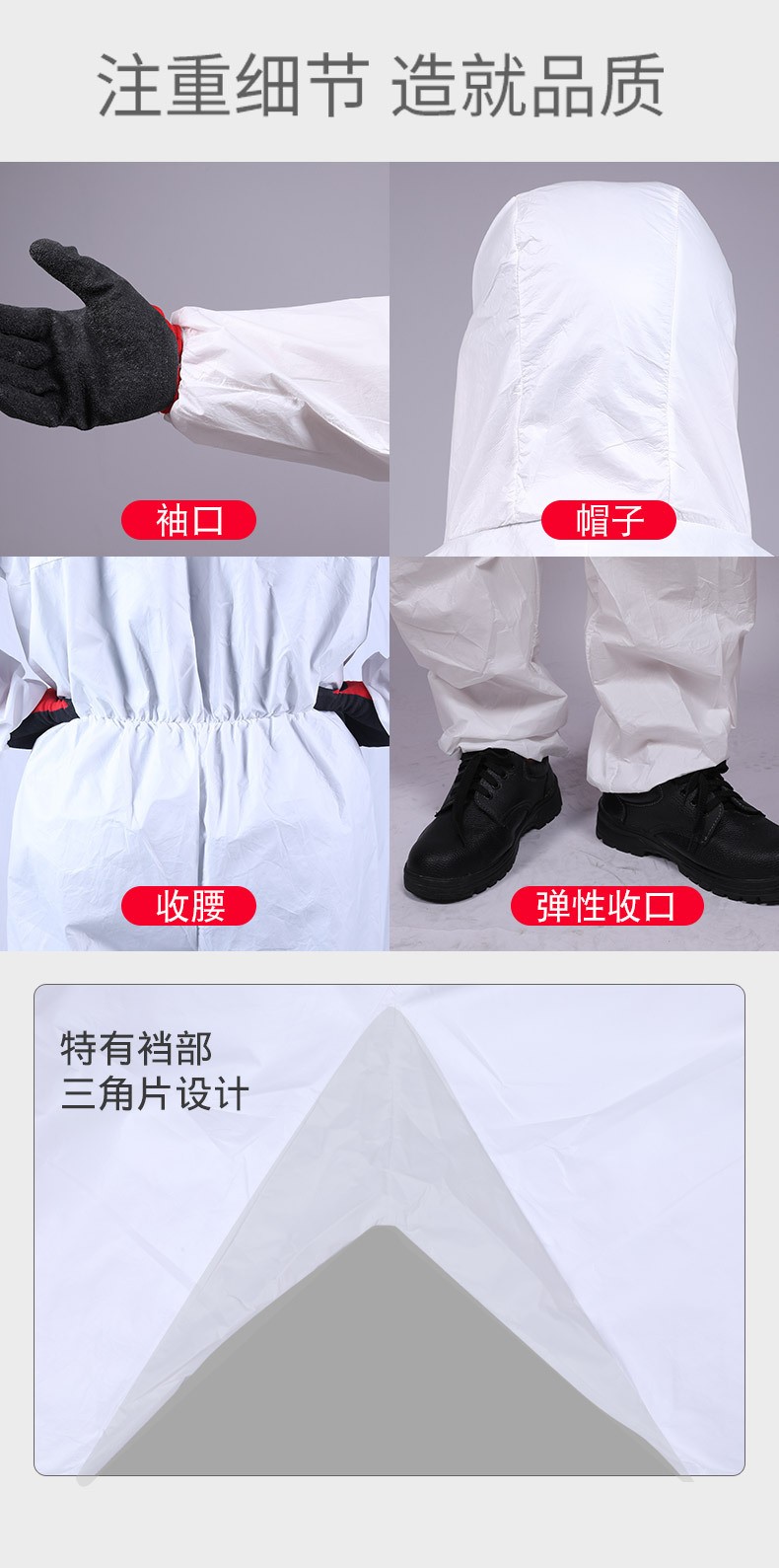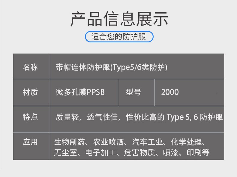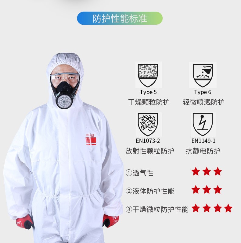 ●特点:质量轻、透气性佳、性价比高的TYPE5,6防护服;