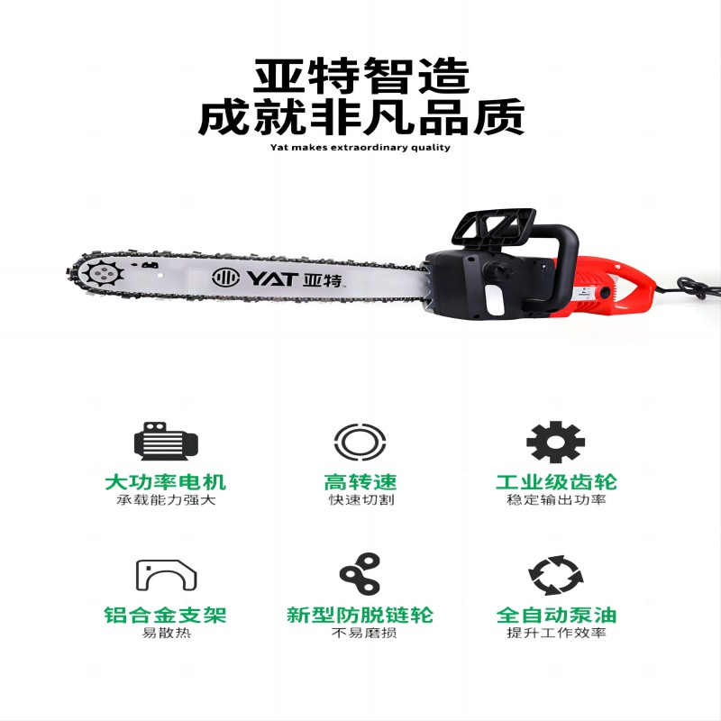 电源:220V/50Hz 额定功率:3000W 空载转速:8000r/min 电机类型:全铜有刷 链条运转速度:150m/s 链板长度:455mm(18寸)润滑油箱容量:220ml