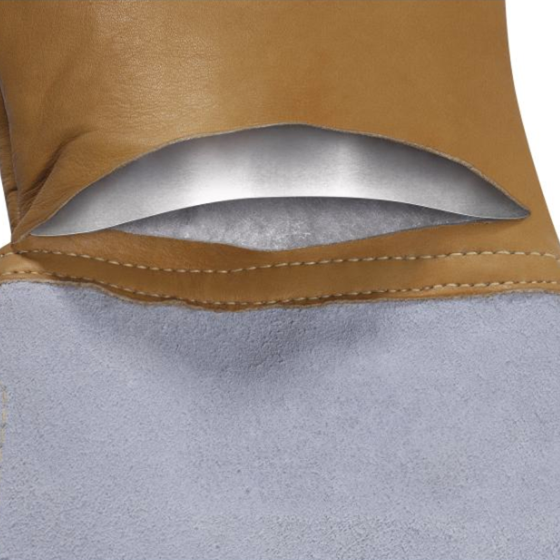 ●嵌入镀铝涤纶,合成衬里,剖层革牛皮袖口,Kevlar®缝线。