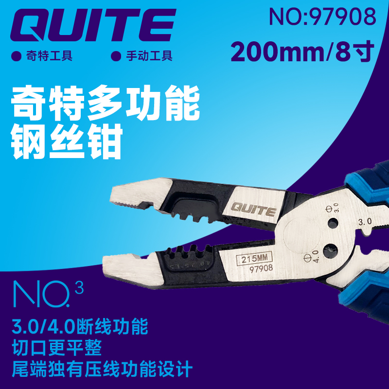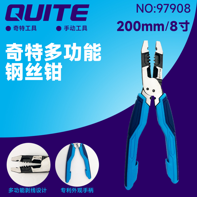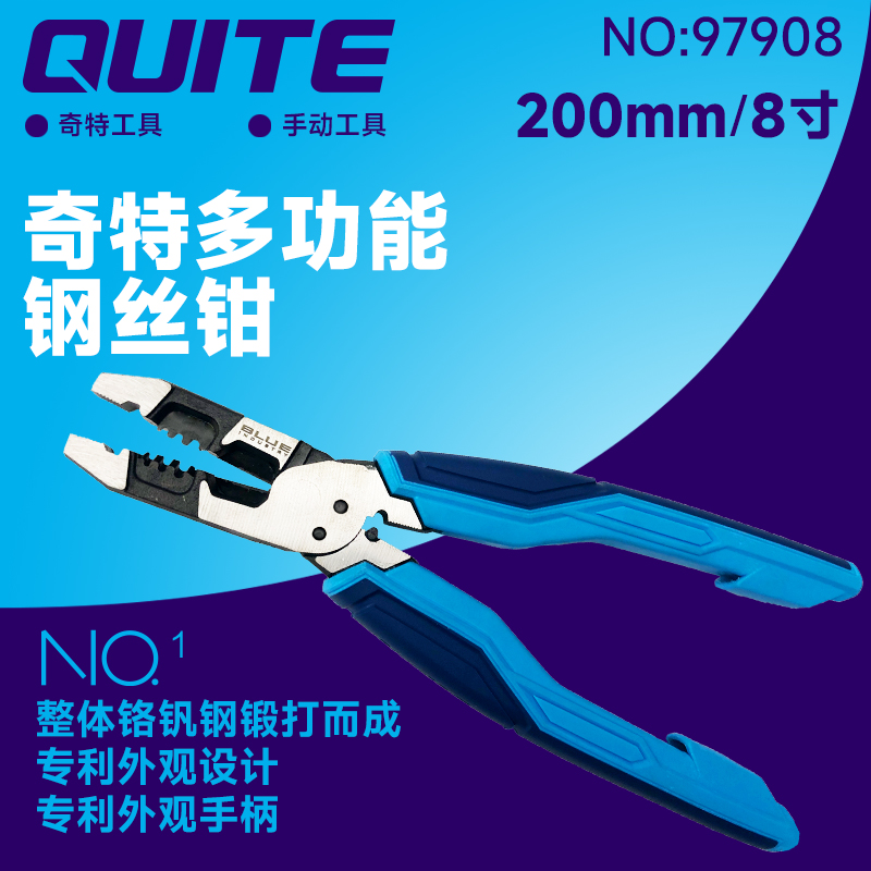 | 优质铬钒钢整体锻打,偏心省力设计,钳口感应淬火,多功能剥线设计,剪切寿命更长久,独有断螺丝设计,断丝不伤丝,尾端压线设计,专利人体工程学手柄,握持更舒适 |