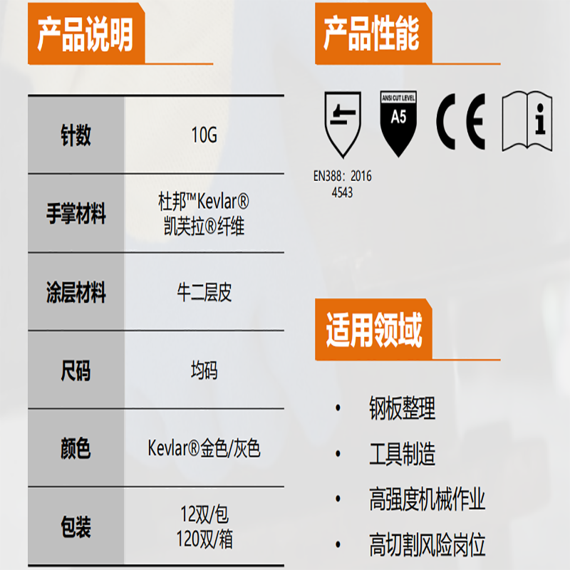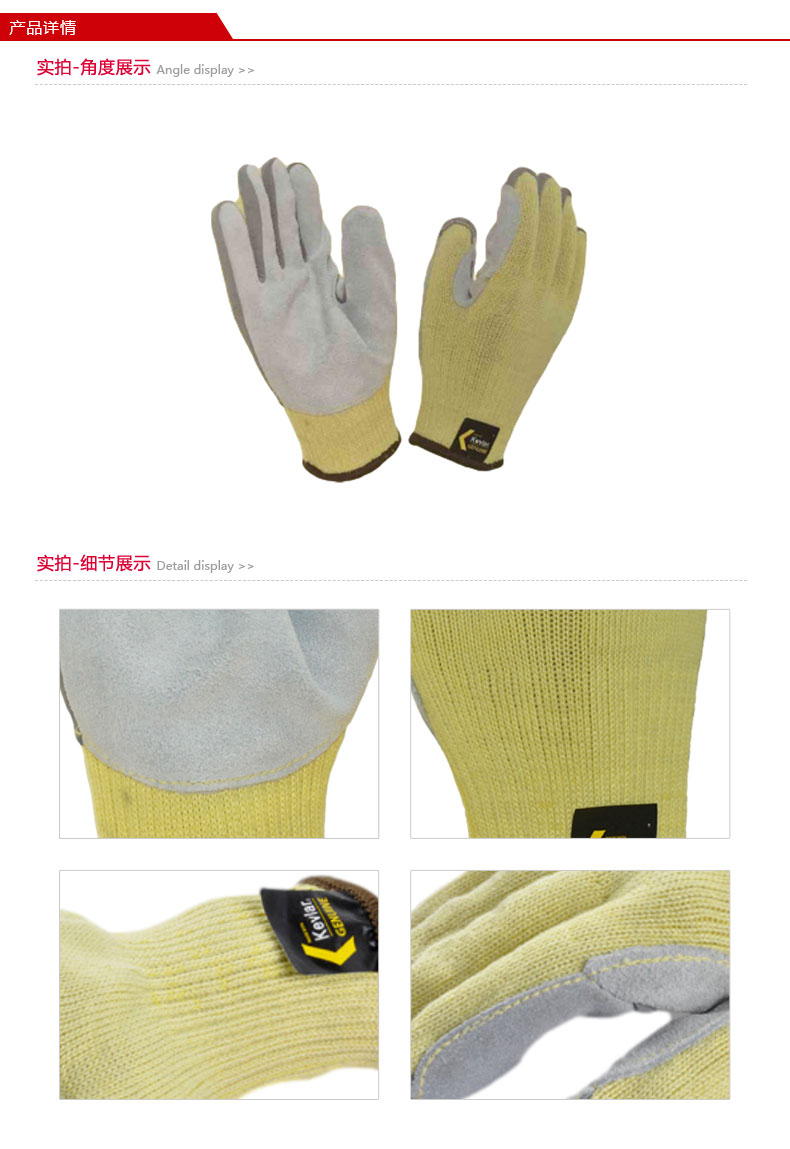 掌部贴缝优质牛二层皮,使得手 套具有卓越的耐磨和抗穿刺性;