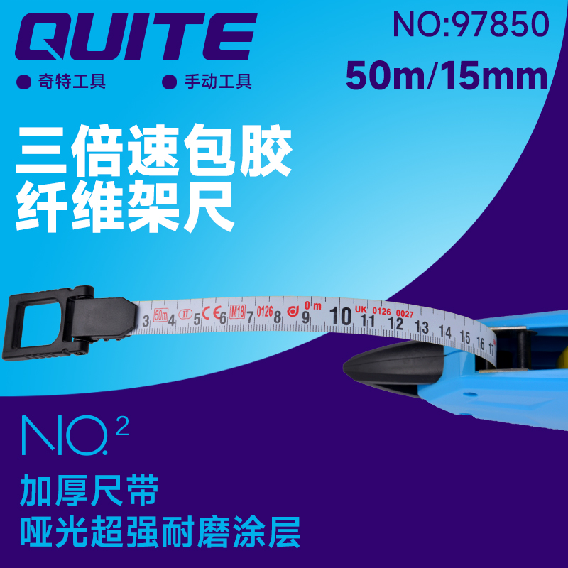 全新ABS加厚塑壳,TPR包胶手柄,加厚尺带,哑光超强耐磨涂层,三倍速尺带快速回收摇柄,可折叠设计便于收纳