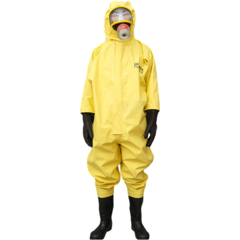 用途:适用于消防队员,工作人员在有酸碱,汽油等化学品事故现场穿着的防护服装。不适用于在有毒气体的事故现场或进入火场的防化服
