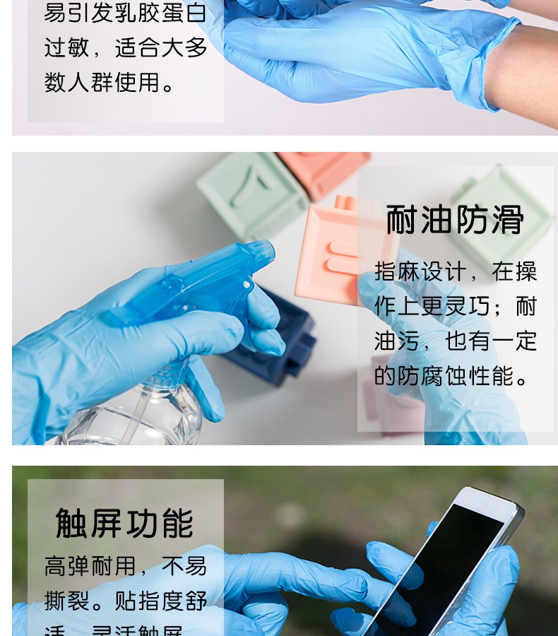 轻乳胶或PVC一次性手套抗刺穿李高三倍,更加轻盈清凉 安全耐用更具物超所值;