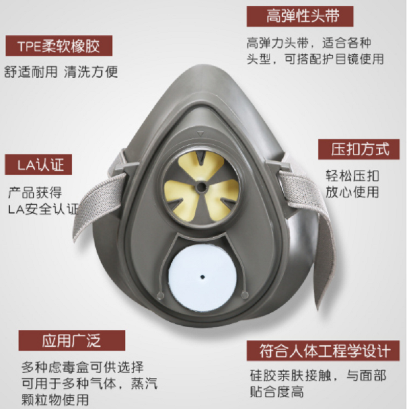 ●防护对象:二氧化硫、氯气、硫化氢、氮的氧化物、光气、磷和含氯有机农药、盐酸、硫酸等其他酸性气体或蒸气。