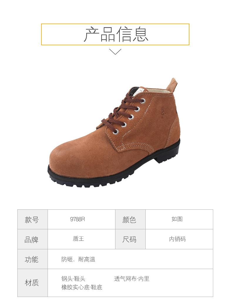 盾王 9788R橡胶注塑中帮防砸安全鞋(无鞋盒);