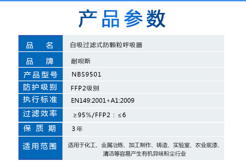 防护级别:FFP2级别;