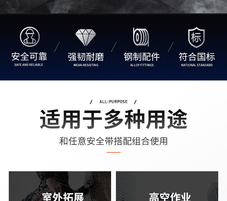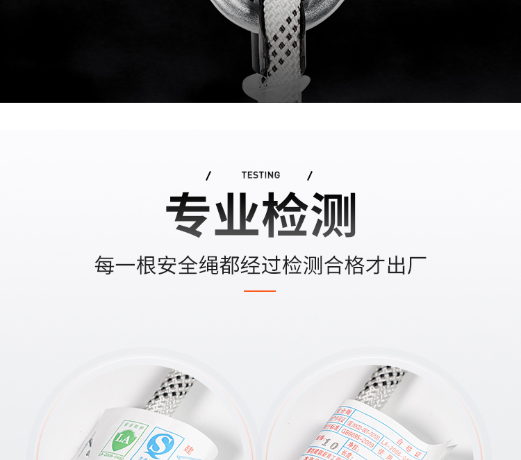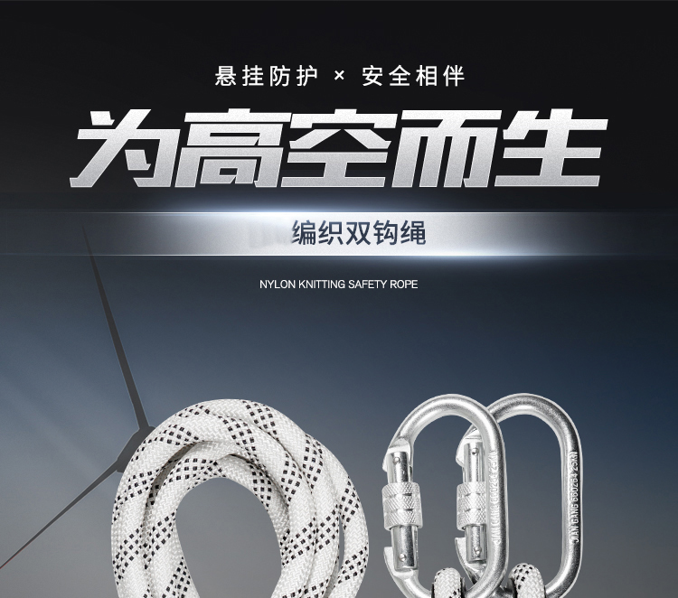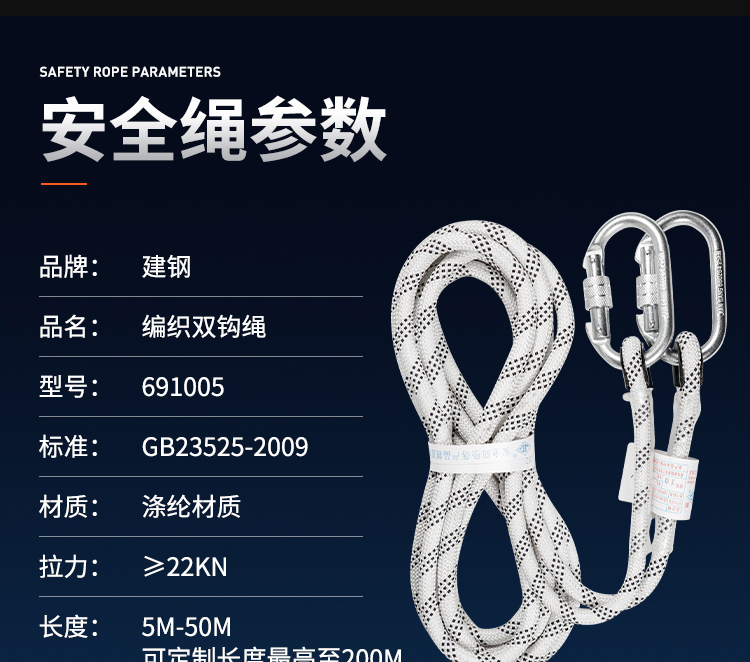 建钢 10mm编织带双小钩安全绳。