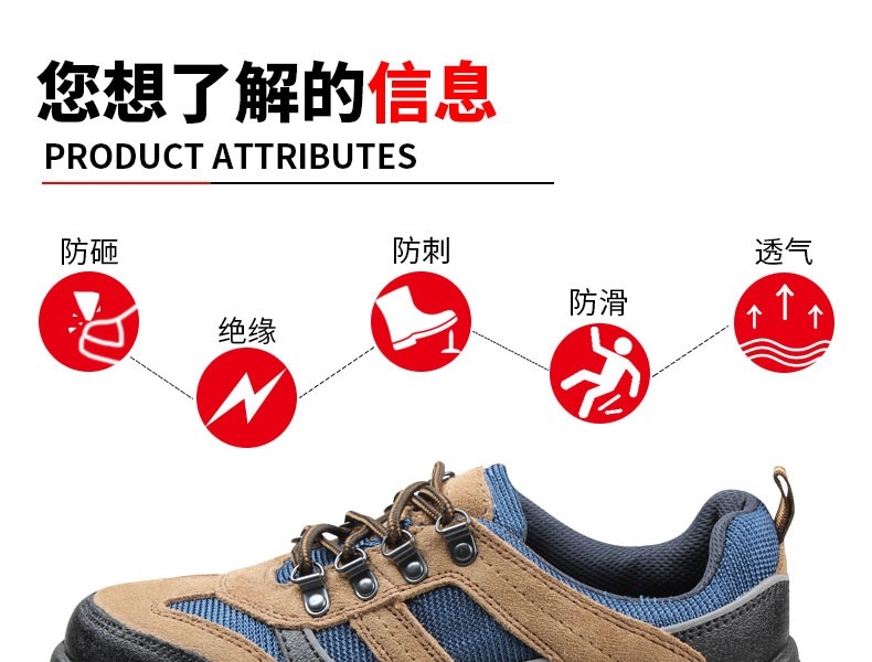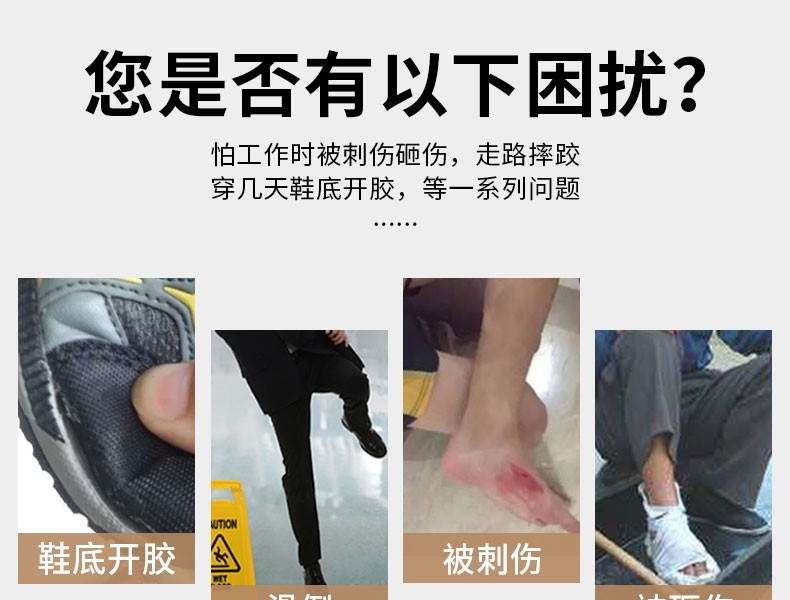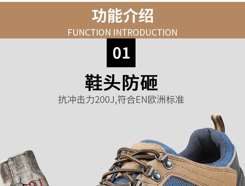 鞋头防砸,抗冲击力200J,符合EN欧洲标准;