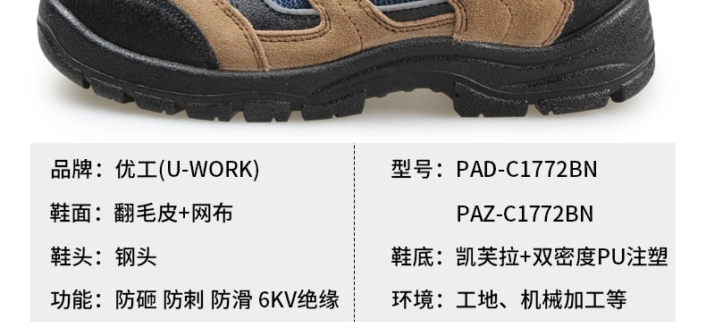 优工PAD-C1772BN防砸防刺穿绝缘安全鞋;