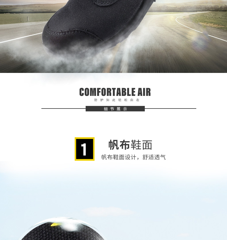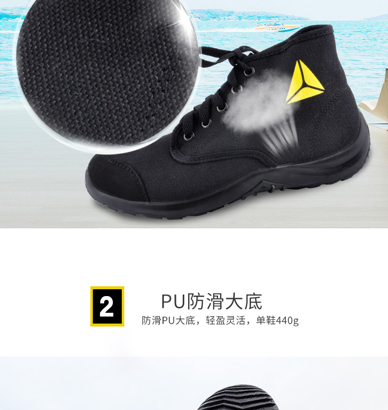 Light Walkers系列新款安全鞋,帆布织物帮面,防滑柔软PU大底,极致轻盈灵活,单鞋440g;