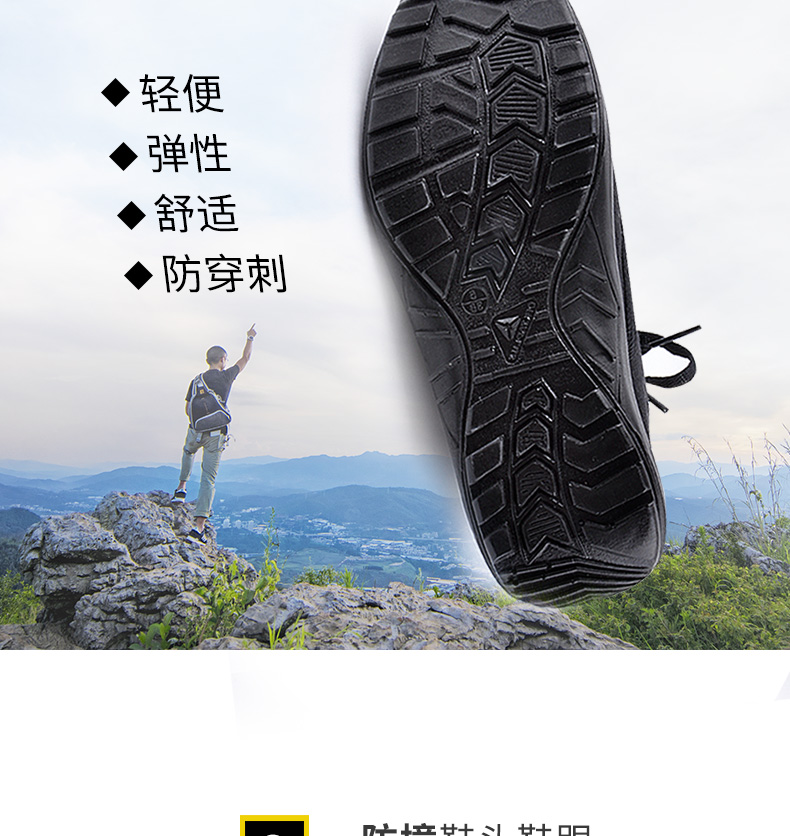 防砸、防刺穿、防静电、 后跟减震、耐磨、SRC级防滑;