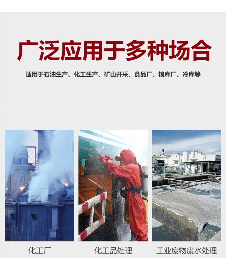 用途范围:炼钢厂、石油化工厂、电信、航空、紧急医疗部门、化工厂。