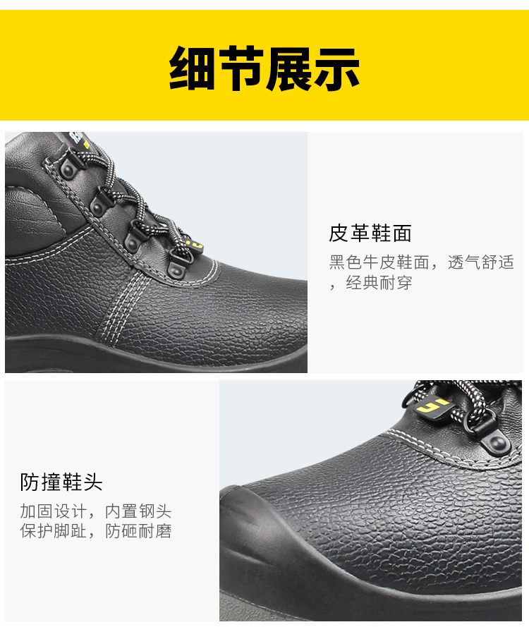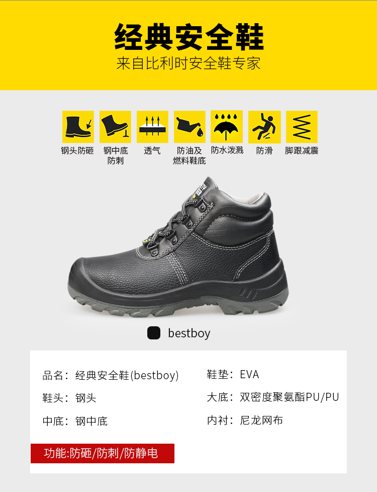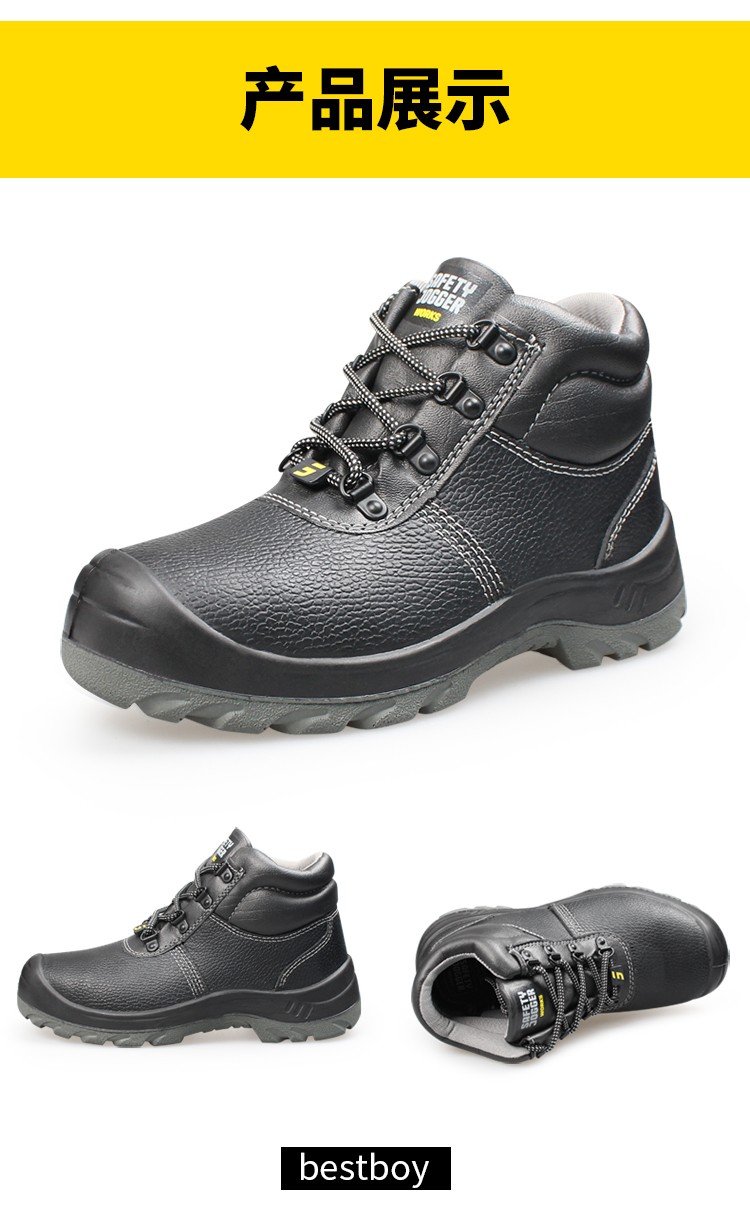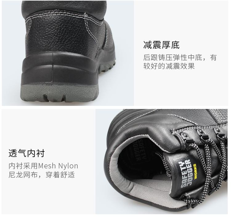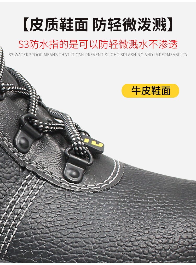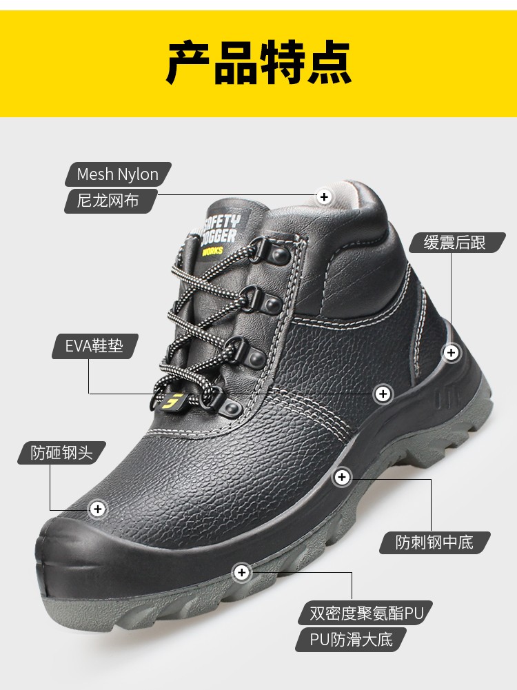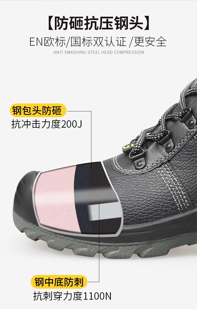 钢制防砸包头保护足趾,钢制防刺穿中底;