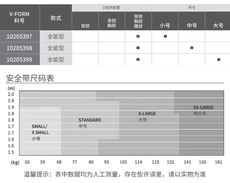 D 型环位置 背部、胸部、腰部(详见料号配置表) ;