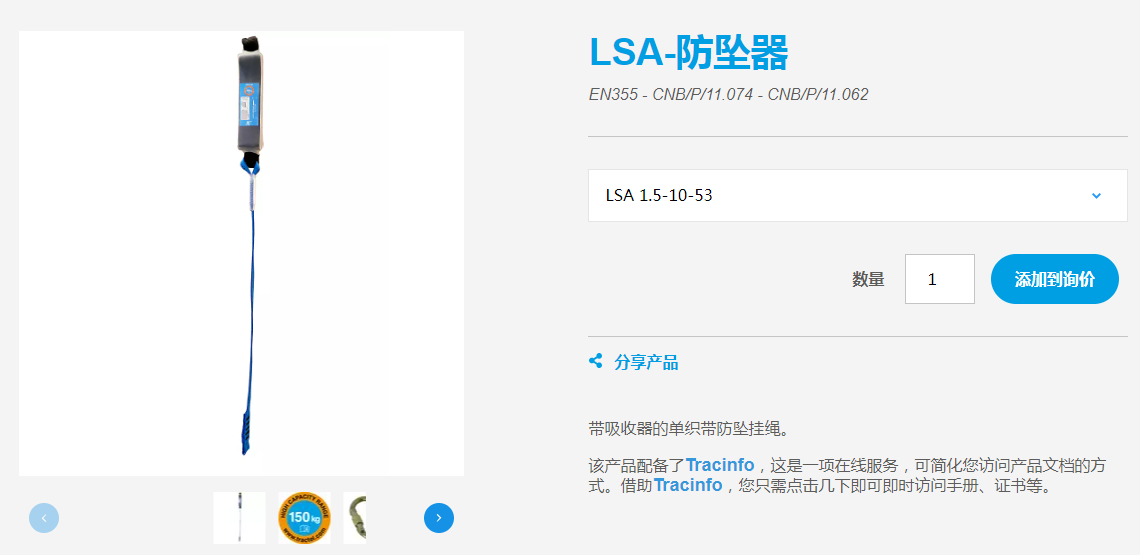 达克泰 19152 2M-M10-M53 单大钩织带式缓冲安全绳;