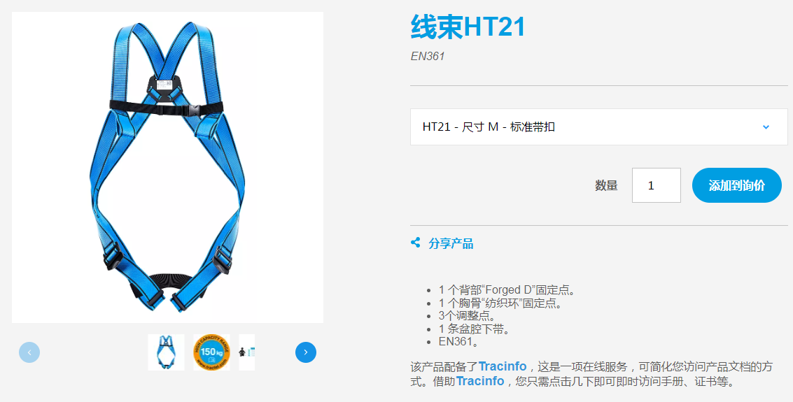 达克泰 101258M HT21 标准全身式攀爬安全带;