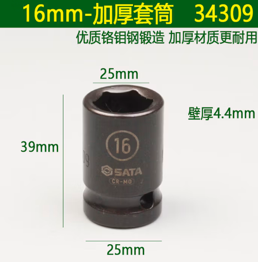 • 商品名称:世达工具 34309 1/2"系列六角风动套筒16MM