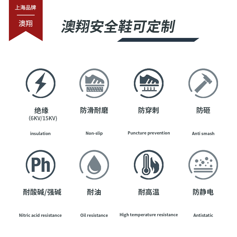 产品采用加宽钢头,符合亚洲人脚型,减少钢头夹脚现象 ,封闭鞋舌设计,防止液体飞溅。