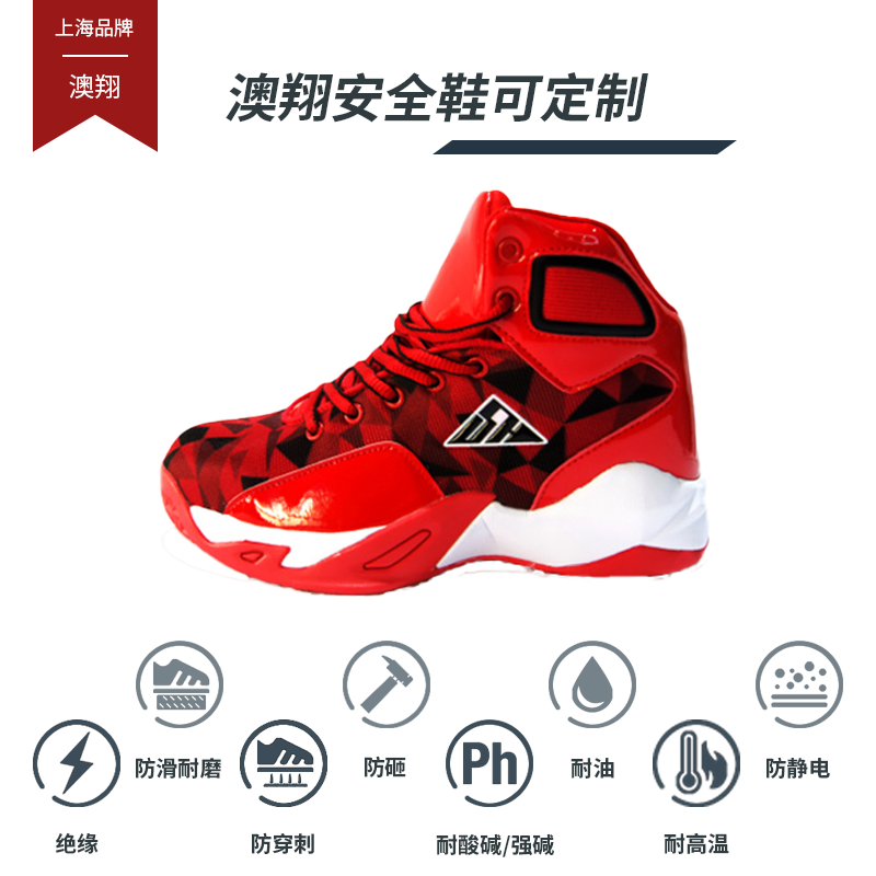 澳翔劳保鞋SH19-06 红色防砸(保护足趾)耐油耐酸碱橡胶底;