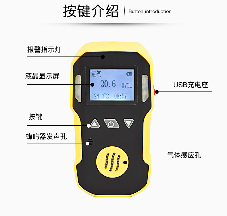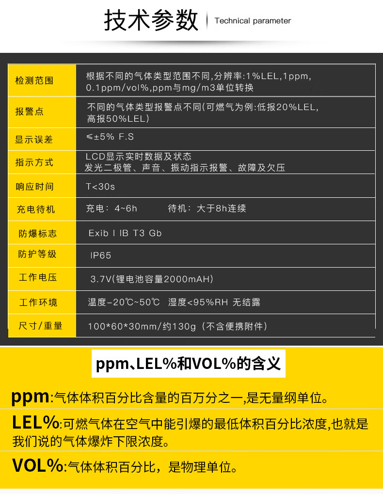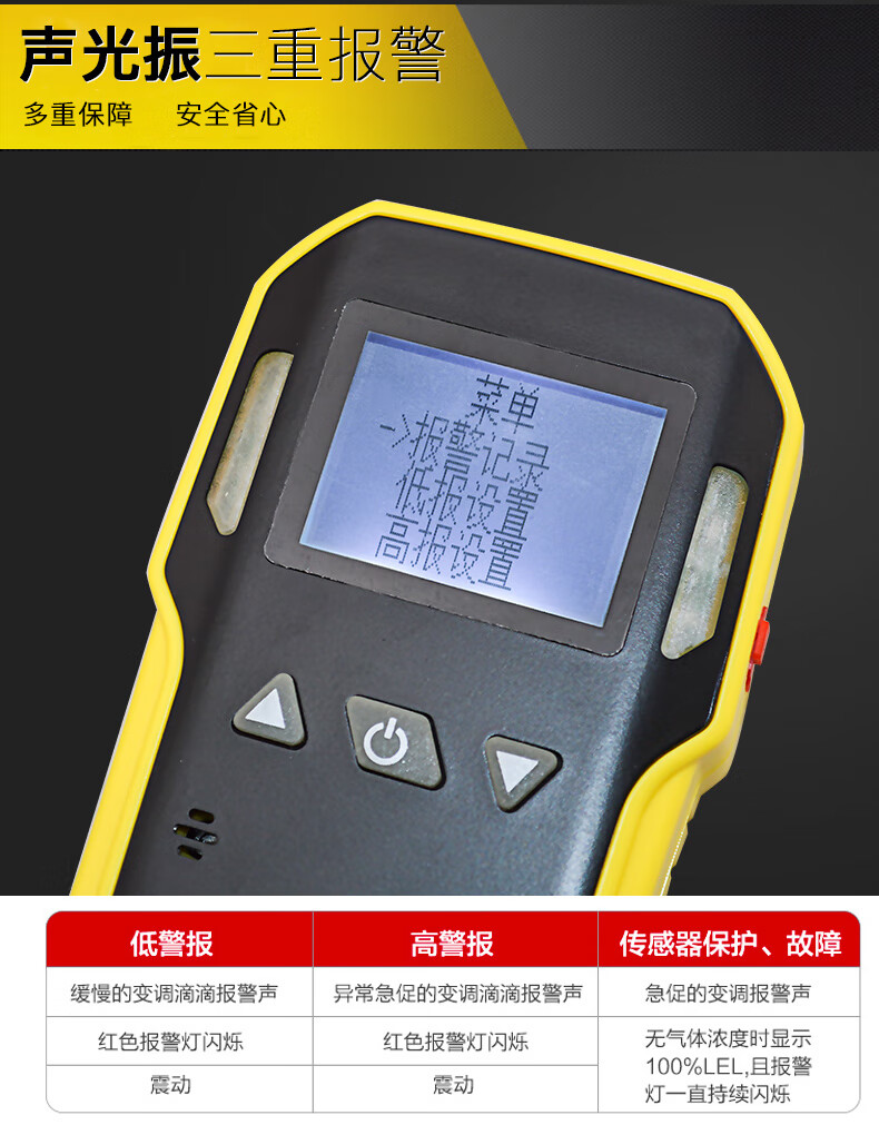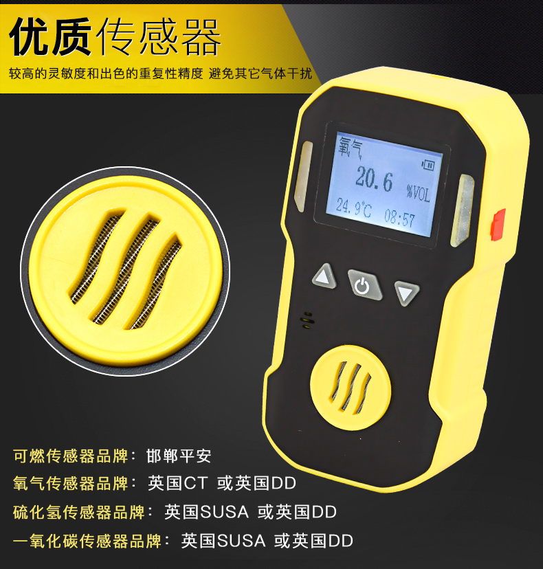 体积小巧,且具备高度防水性能,经得起恶劣环境的考验。高强度ABS材质,两级三重报警(声、光、震动)不易忽略,安全可靠。高、低报警值可设置。