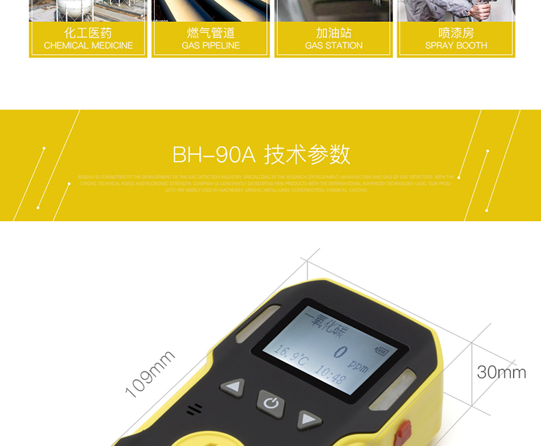 BH-90 是一款高性价的便携式单一气体检测仪,采用主流8位微控制技术,响应速度快,测量精度高,稳定性和重复性好,操作简单。